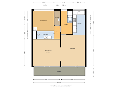 Hoewel deze woningpresentatie met de grootst mogelijke zorg is samengesteld blijft de mogelijkheid bestaan dat er fouten en/of onvolledigheden in de omschrijving aanwezig zijn. Noch de verkoper, noch ons kantoor aanvaarden in dit geval enige aansprakelijkheid.