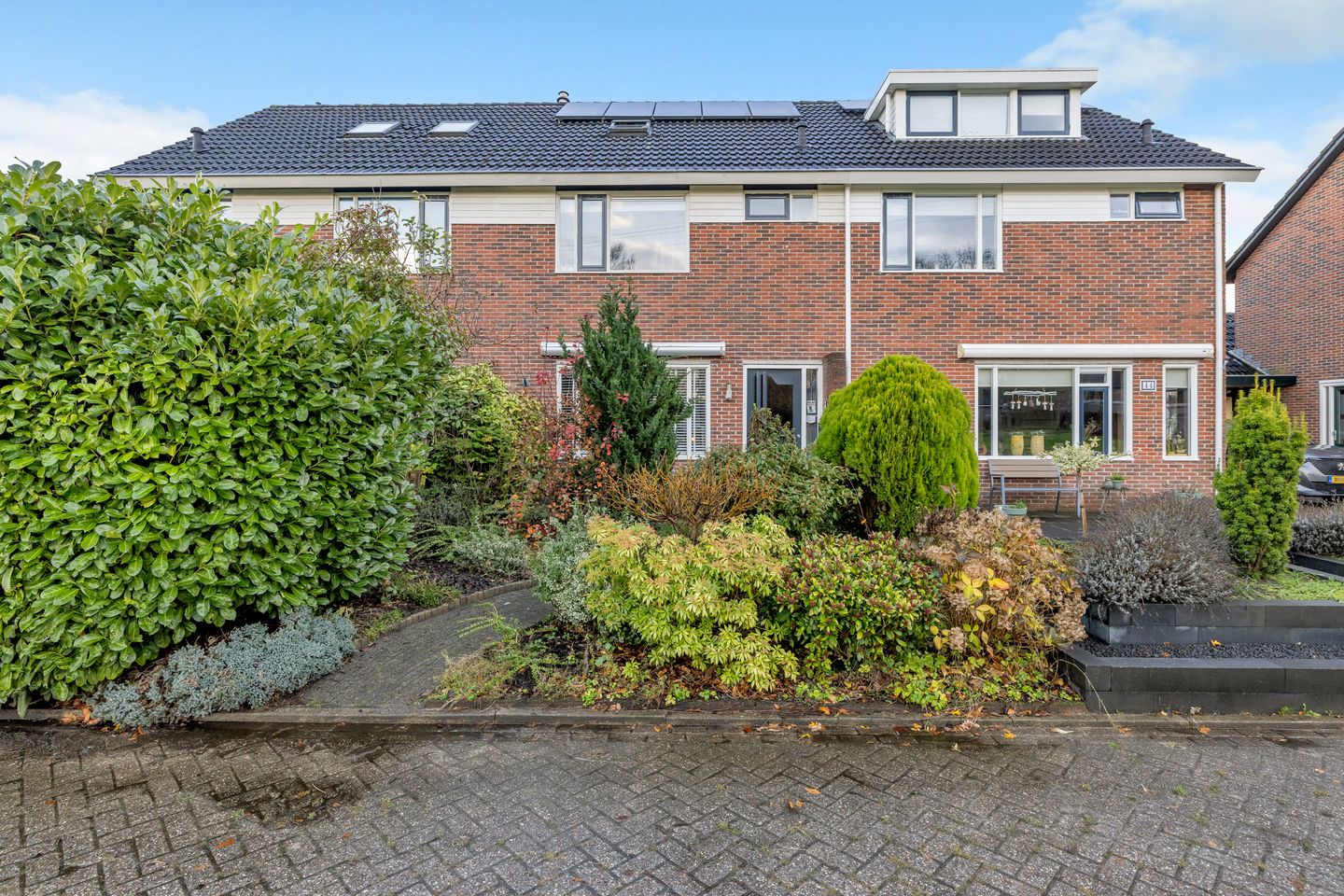De woning is zowel aan de voor- als aan de achterzijde voorzien van in totaal 10 zonnepanelen.