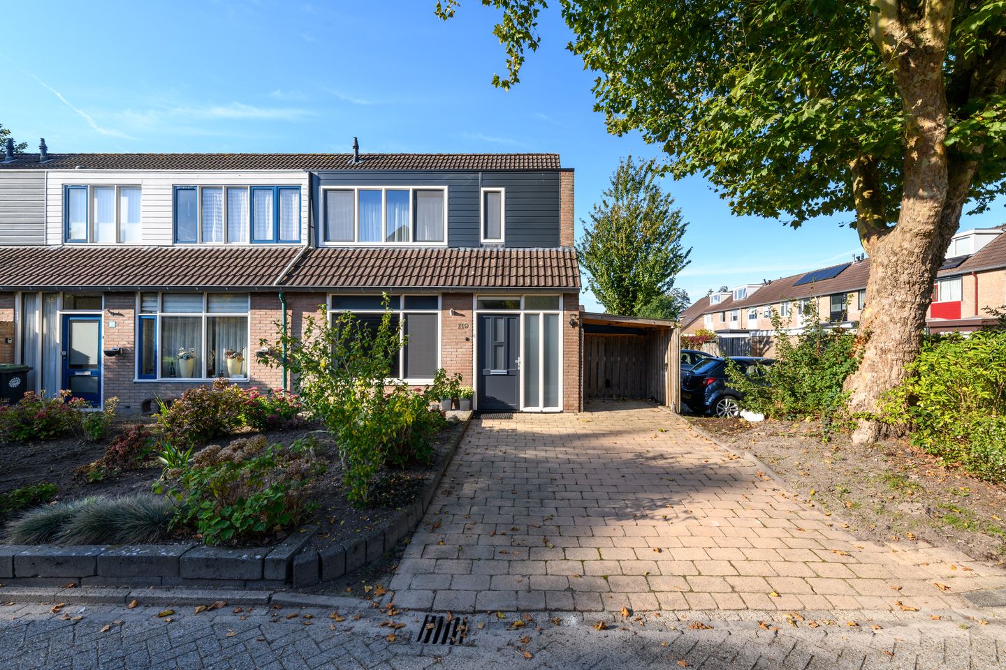 Door de hoekligging is er circa twee meter extra tuin naast de woning. Dit deel is nu afgesloten met een schutting en overkapping — ideaal om een kar, vouwwagen of iets anders droog te stallen.
