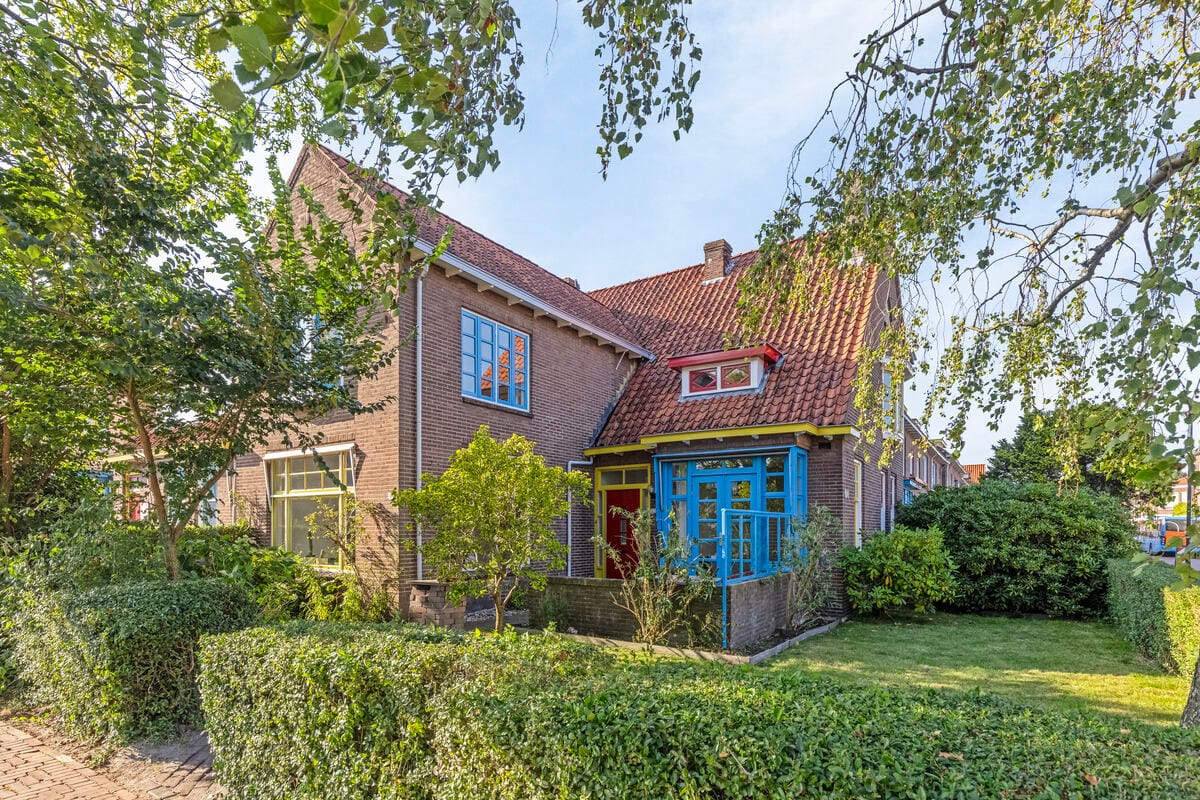 Kunst wordt vaak pas later gewaardeerd! Deze beeldbepaldende woning staat op de hoek van de ‘Papegaaienbuurt’. Deze bijnaam kreeg dit gedeelte van Drachten bij de bouw van de woningen in de jaren ’20. De felle kleuren van het houtwerk zorgden voor veel opschudding. Binnen een jaar werd het overgeschilderd in de meer traditionel kleuren groen en wit. In 1988 zijn de oorspronkelijke kleuren weer aangebracht . Recent is ook het straatwerk aangepast aan de kleuren. Een mooi stuk Drachten!