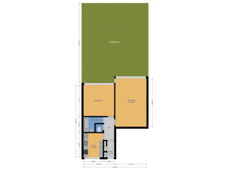 - 87 m² (10,50 meter diep en 8,30 meter breed)