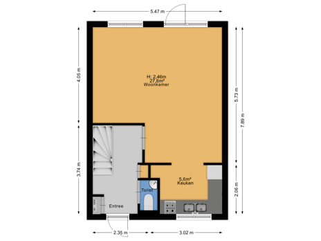 - 68 m² (8,45 meter diep en 8,08 meter breed)