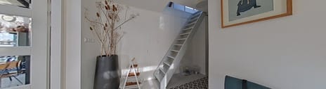 Op de verdieping bevindt zich een royale overloop en een grote lichte zolderkamer. Zo is er in deze woning genoeg ruimte voor een gezin, hobby’s of het combineren van wonen en werken.