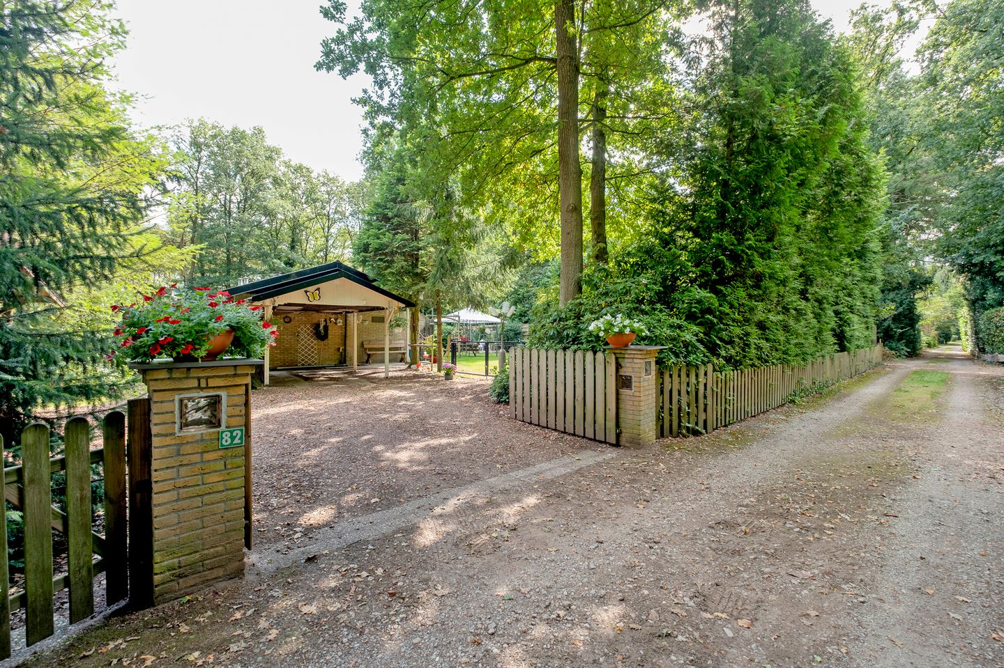 Het buitenleven is hier heerlijk. Vanuit de woning loopt u zo het zonnige terras op. Aan de woning is een tweede overkapping geplaatst. Het perceel is omheind met een houten hekwerk en de carport biedt ruimte om de auto onder dak te parkeren.