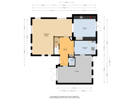 Via de entree kom je in de ruime hal die toegang geeft tot de woonkamer en leefkeuken. De woonkamer is een fijne plek waar je meerdere zithoeken kunt creëren en door de en-suitedeuren loop je zo door naar de keuken. Deze keuken is een echte ontmoetingsplek met genoeg ruimte voor een gezinstafel. Openslaande deuren brengen je direct naar het terras waardoor binnen en buiten mooi in elkaar overlopen. De eigentijdse keuken is compleet uitgerust met inductiekookplaat, vaatwasser, oven, magnetron en koel-vriescombinatie. Vanuit de hal bereik je ook de bijkeuken met witgoedaansluiting en doorgang naar de garage.