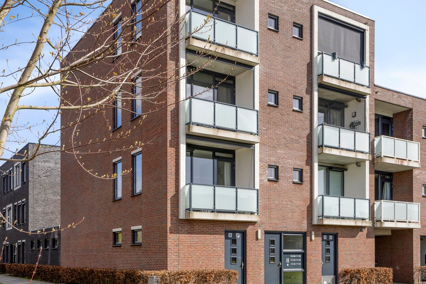 Bij aankomst bij het appartementencomplex tref je het bellentableau, de brievenbussen en de toegang tot de bergingen. De privé-berging is ruim van formaat en perfect voor het stallen van fietsen en extra opslag. Via de centrale entree bereik je de gemeenschappelijke hal met de trapopgang naar het appartement. Op de verdieping waar het appartement is gelegen tref je de meterkast.