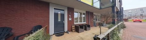 Het appartement beschikt over twee eigen terrassen aan de voor- en achterzijde, direct toegankelijk vanuit zowel de keuken als de woonkamer. Een prettige buitenruimte om buiten te zitten en te genieten van de levendigheid rondom het complex. Aan de achterzijde heb je tevens toegang tot de inpandige berging.
