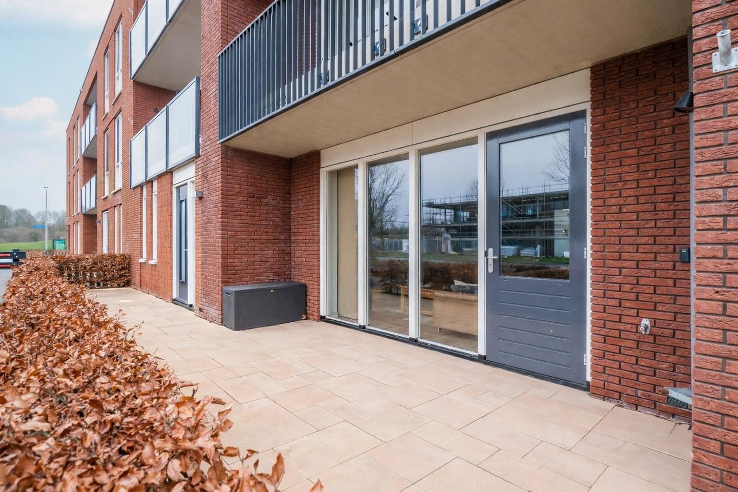 Het appartement beschikt over twee eigen terrassen aan de voor- en achterzijde, direct toegankelijk vanuit zowel de keuken als de woonkamer. Een prettige buitenruimte om buiten te zitten en te genieten van de levendigheid rondom het complex. Aan de achterzijde heb je tevens toegang tot de inpandige berging.