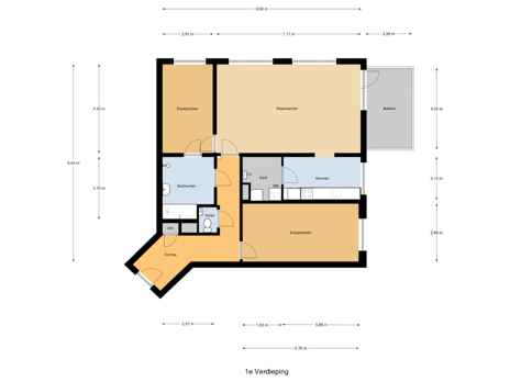 • Ruim zonnig balkon op het zuiden met vrij uitzicht
