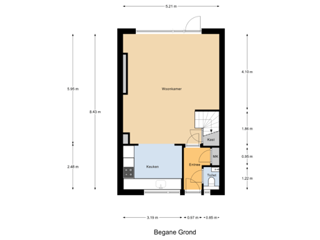 - 60 m² (12,00 meter diep en 5,00 meter breed)