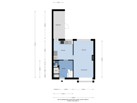 - 108 m² (16,00 meter diep en 7,47 meter breed)