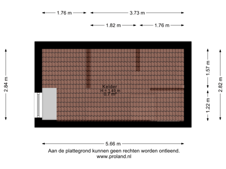 Provisiekelder (ca. 14 m²) met tegelvloer en een hoogte van circa 1,40 meter.