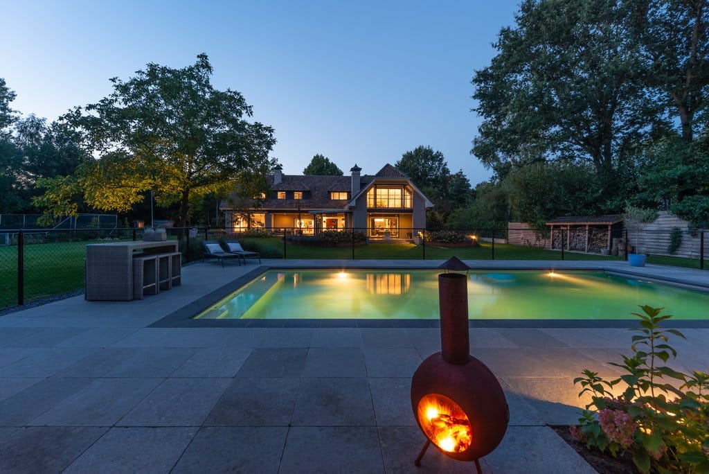 - diverse overdekte terrassen met op afstand bedienbare elektrische zonwering, buitenhaard en terrasverwarming;