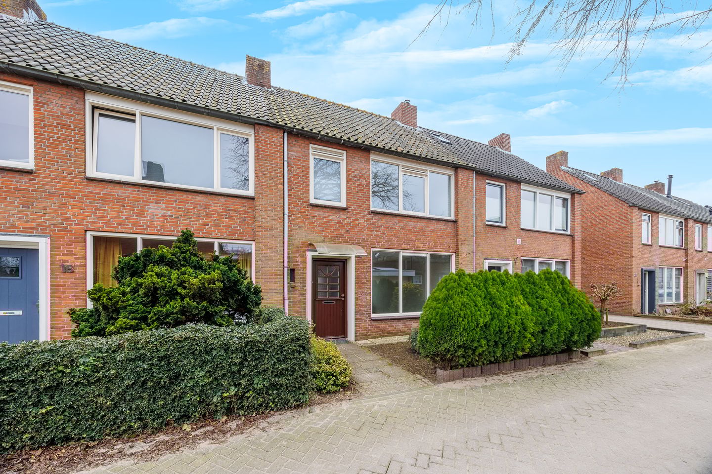 • Aan de voorzijde een doodlopend straatje met parkeerhavens;