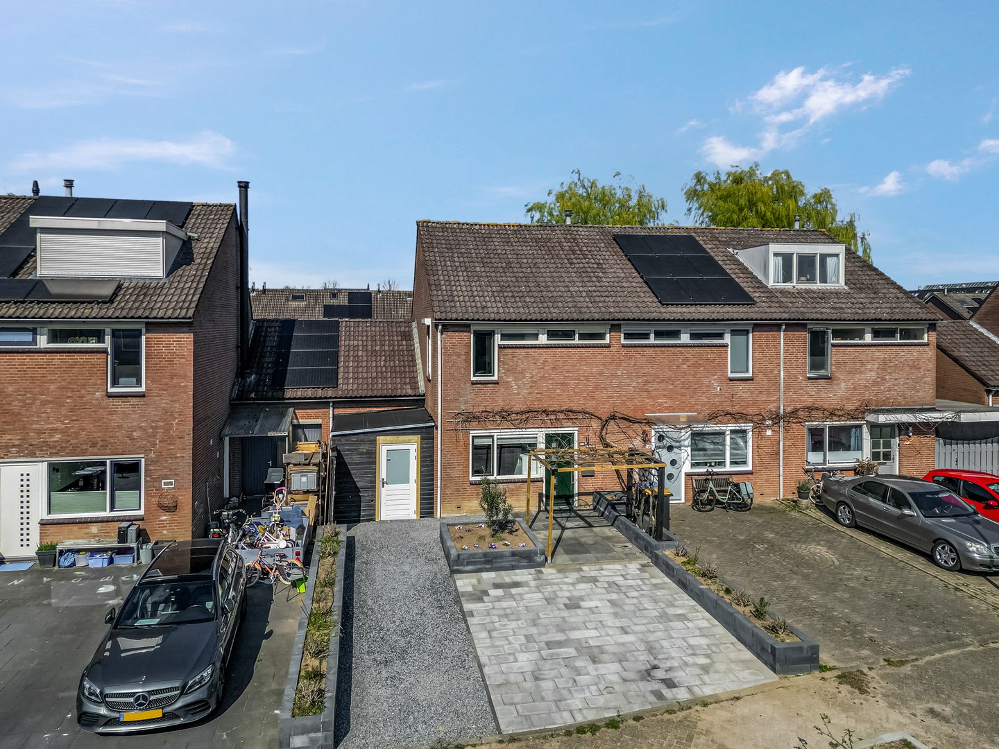 bij aankomst tref je een fraaie voortuin met oprit en een pergola. De achtertuin biedt vele extra's: een serre met glazen pui, verlichting en zonwering aan de bovenzijde. Daarnaast is er een overkapping gemaakt, zodat er bijvoorbeeld een buitenkeuken / bar kan worden gemaakt. Hier is ook de garage te bereiken, welke mooi bemeten is.