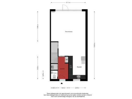- 55 m² (8,50 meter diep en 6,50 meter breed)