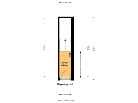 Hier bevindt zich uw eigen entree met trapopgang naar de 1e verdieping. Hier is eveneens de meterkast gesitueerd, welke voorzien is van voldoende groepen (uitgebreid door komst 2e badkamer) en aardlekschakelaars.