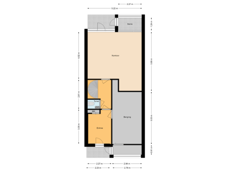 - 48 m² (9,50 meter diep en 5,08 meter breed)