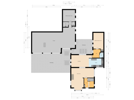- Aangebouwde stenen garage en garage met carport
