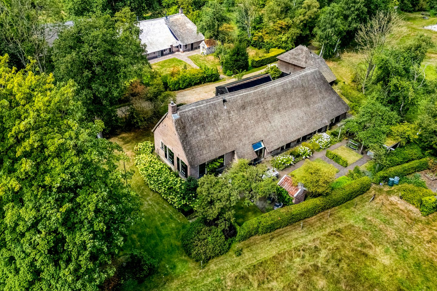 Aan het schilderachtige Westeinde, één van de oudste en meest karaktervolle straten van Dwingeloo, staat deze riet gedekte MONUMENTALE WOONBOERDERIJ met GASTENVERBLIJF, BAKSHUISJE, GARAGE en WEILAND op een royaal perceel van 4.235 m². Het Westeinde vormt al eeuwenlang de verbinding naar het middeleeuwse Landgoed Oldengaerde, ooit in bezit van vooraanstaande Drentse families, nu in eigendom bij Het Drents Landschap, en ademt nog altijd de sfeer van historie en landelijke grandeur. Te midden van deze bijzondere omgeving staat deze boerderij, gebouwd rond 1850 en onder architectuur met zorg gerestaureerd en verduurzaamd, als een levend monument van Drentse bouwkunst waarbij een combinatie van authentieke elementen en modern comfort samenkomen.