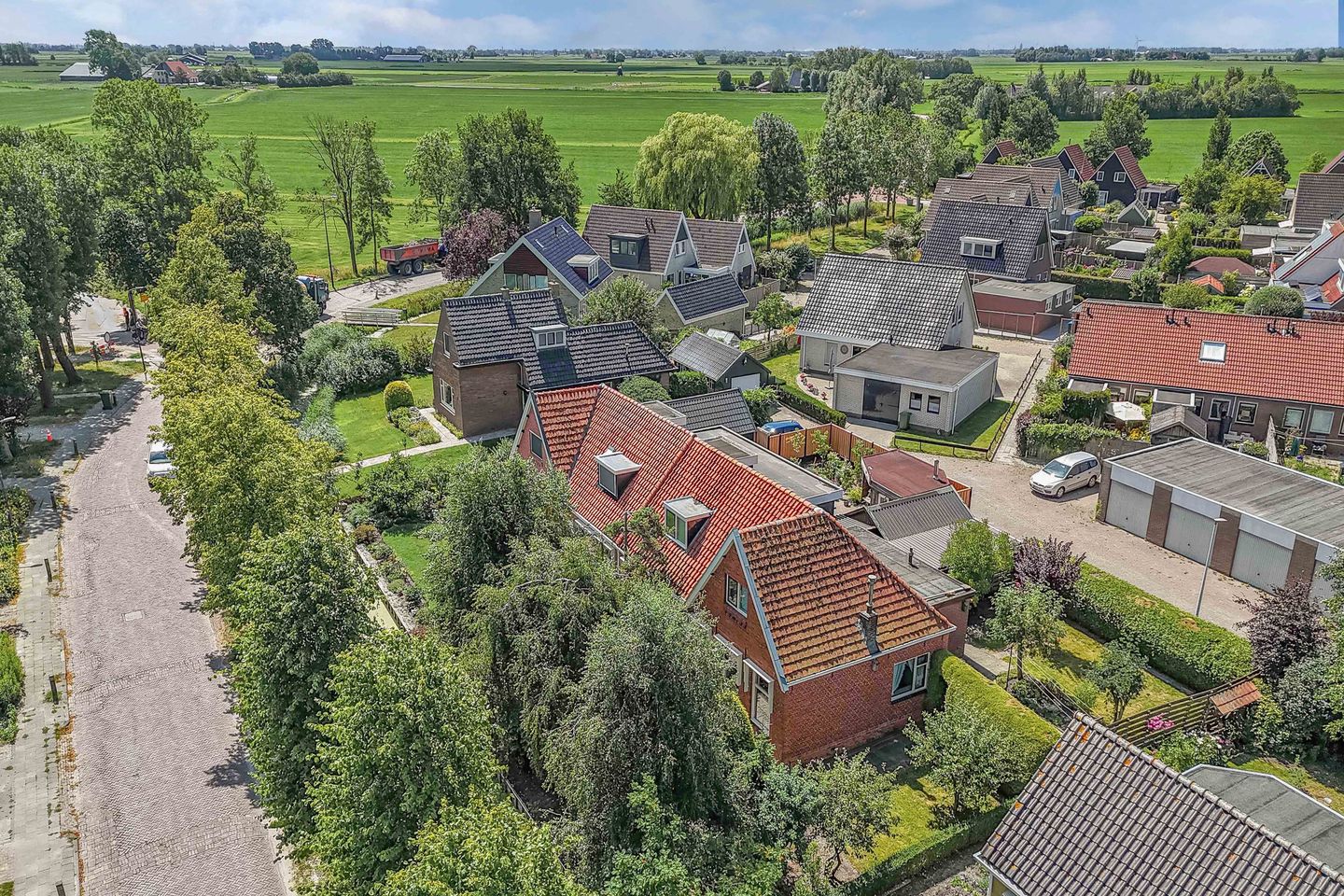 De tuin is met zorg onderhouden en fraai aangelegd. De siertuin aan de voorzijde is ingericht met een diversiteit aan planten, heesters en bomen. Naast de voordeur is een waterput waarin het regenwater wordt opgevangen. De tuin heeft een gunstige zonnestand. De hele dag kunt u hier genieten van een heerlijk plekje in de zon, alsook in de schaduw. Dankzij de beschutte ligging kun je hier al in het vroege voorjaar genieten van het buitenleven. Eenvoudig kunt u het binnen- met het buitenleven te verbinden door het plaatsen van openslaande tuindeuren in de woonkeuken. De tuin biedt veel privacy en is ruim genoeg voor meerdere zitplekken, speelruimte of bijvoorbeeld een moestuin. Aan de achterzijde is een houten garage met een carport ernaast. De garage is voorzien van elektra en biedt ruimte voor het parkeren van een auto, maar is ook heel geschikt als klusruimte, fietsenstalling of extra bergruimte.