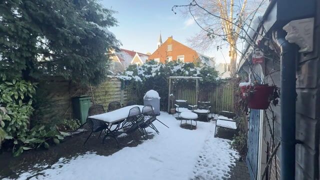 Vanuit de keuken loop je de tuin in, met genoeg plek voor een loungeset en een tafel met stoelen. De beplanting heeft weinig onderhoud nodig en er staat een ruime berging, voor de fietsen en andere spullen. Rechts van de woning is een achterom, afgesloten met een poort. Zomers kan je aan de voorzijde heerlijk vertoeven aan het water, of zelfs een duik nemen voor de nodige verkoeling.
