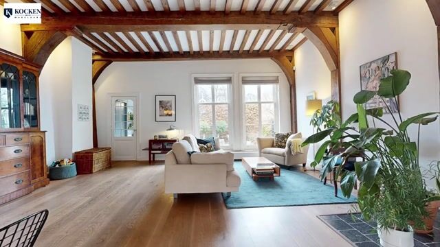 Het moge duidelijk zijn dat alle ruimtes in dit huis een en al authenticiteit uitstralen. De organische vormen, niveau verschil, plafond van 3,5 m, balken in zicht, open verbindingen en vele grote ramen met roedeverdelingen dragen hier zorg voor een statige sfeer. Er is een perfecte basis om uw woonstijl hier door te voeren. De ruime woonkamer voelt knus en huiselijk aan, mede dankzij de sfeervolle open haard.