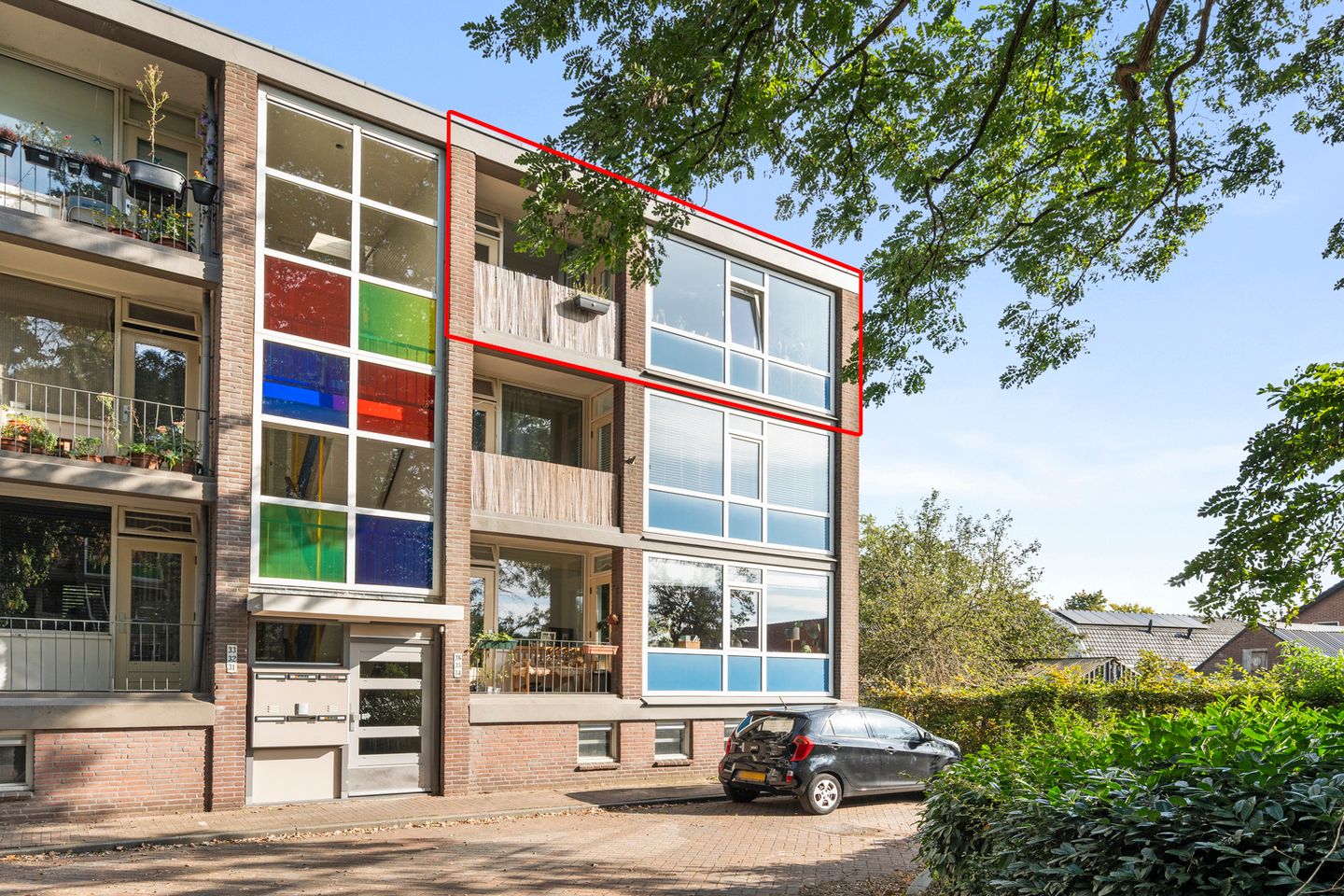 Op korte afstand van het centrum en de bossen, in een groene woonomgeving gelegen, 4-KAMER HOEKAPPARTEMENT met 2 balkons en een ruime berging (ca. 18 m²!) in de onderbouw. Het appartement is op de 3e en tevens bovenste woonlaag gelegen waardoor er veel privacy is. De centrale entree is afgesloten en ook vanuit het appartement te openen middels een intercominstallatie.