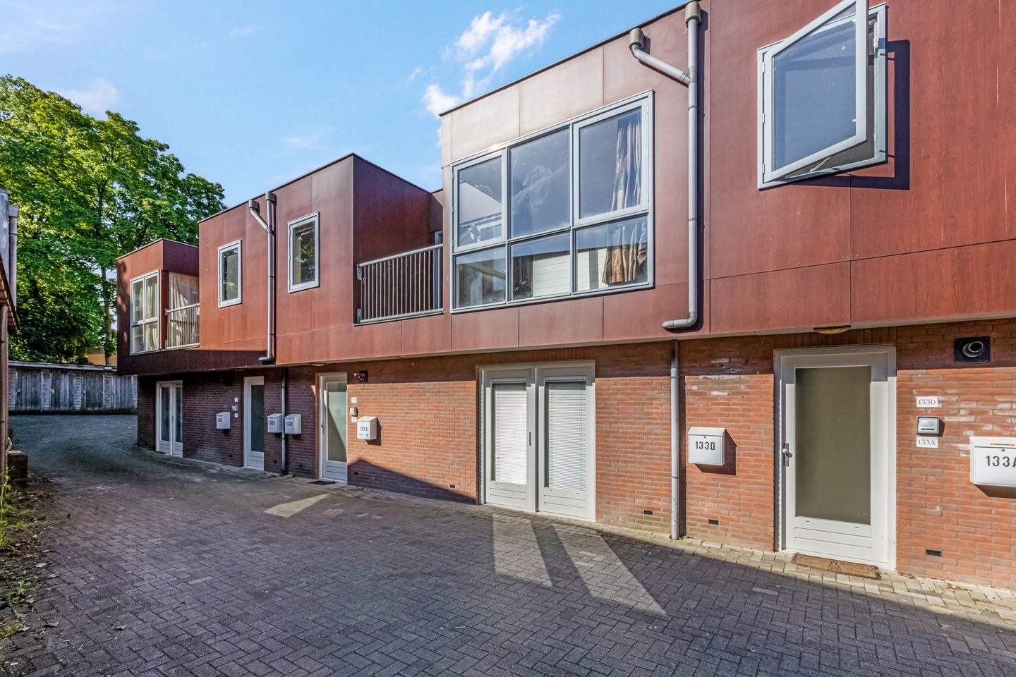 Tussen de supermarkt en de kapsalon is een inrit, naar de parkeerplaatsen en de appartementen. Vervolgens loop je naar de entree van huisnummer 133b en 133e, beiden met een eigen brievenbus. Eenmaal binnen ga je met de trap naar de eerste verdieping. Er is verder niemand die gebruikmaakt van deze trap, waardoor je heel rustig woont.