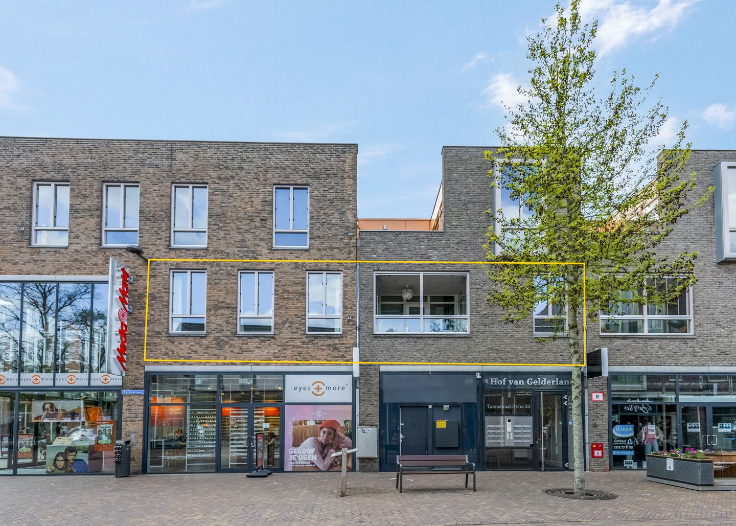 De entree van ‘Hof van Gelderland’ is aan de Torenstraat, rechts van Eyes and More. Aan de buitenzijde zijn de brievenbussen, het bellentableau en de intercom. Eenmaal binnen ga je met de trap of lift naar de eerste verdieping, waar dit appartement gesitueerd is. De entree van het parkeerdek is aan de Marktstraat, een zijstraat van de Molenstraat.