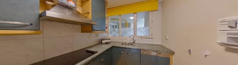 De woonkamer ligt aan de oostzijde van het gebouw en kijkt uit over de Ketelstraat. Dankzij de grote raampartijen is het hier heerlijk licht. Er is volop plek voor een comfortabele zithoek, een tv-meubel en een ruime eettafel – perfect voor gezellige avonden met vrienden of familie. De halfopen keuken sluit mooi aan op de leefruimte. Deze hoekkeuken is uitgerust met een keramische kookplaat, een wasemkap, een koelkast, een oven en een vaatwasser. In de keuken bevindt zich ook een praktische inbouwkast met opstelplaats voor de cv-ketel.