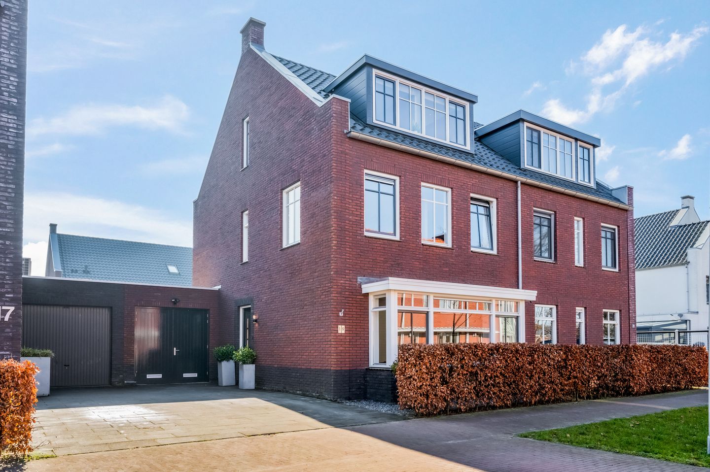 In de voortuin staat een beukenhaag, net als bij de meeste woningen in de straat. Dankzij de oprit kun je altijd op eigen terrein parkeren en sluit de aangebouwde garage direct aan op de achtertuin.