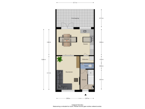 Deze informatie is door ons met de nodige zorgvuldigheid samengesteld. Onzerzijds wordt echter geen enkele aansprakelijkheid aanvaard voor enige onvolledigheid, onjuistheid of anderszins, dan wel de gevolgen daarvan. Alle opgegeven maten en oppervlakten zijn indicatief. Van toepassing zijn de Vastgoed Nederland consumenten voorwaarden.