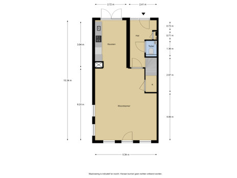 - 40 m² (7,00 meter diep en 5,73 meter breed)