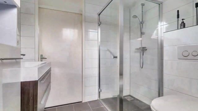 Overloop met 3 slaapkamers en de badkamer. De slaapkamers aan de voorkant zijn voorzien van rolluiken. Badkamer met douchecabine, ligbad, toilet en een dubbel wastafelmeubel met bijpassende hoge kast. Mechanische ventilatie is aanwezig en een Velux kunststof dakraam voor natuurlijke ventilatie en daglicht.