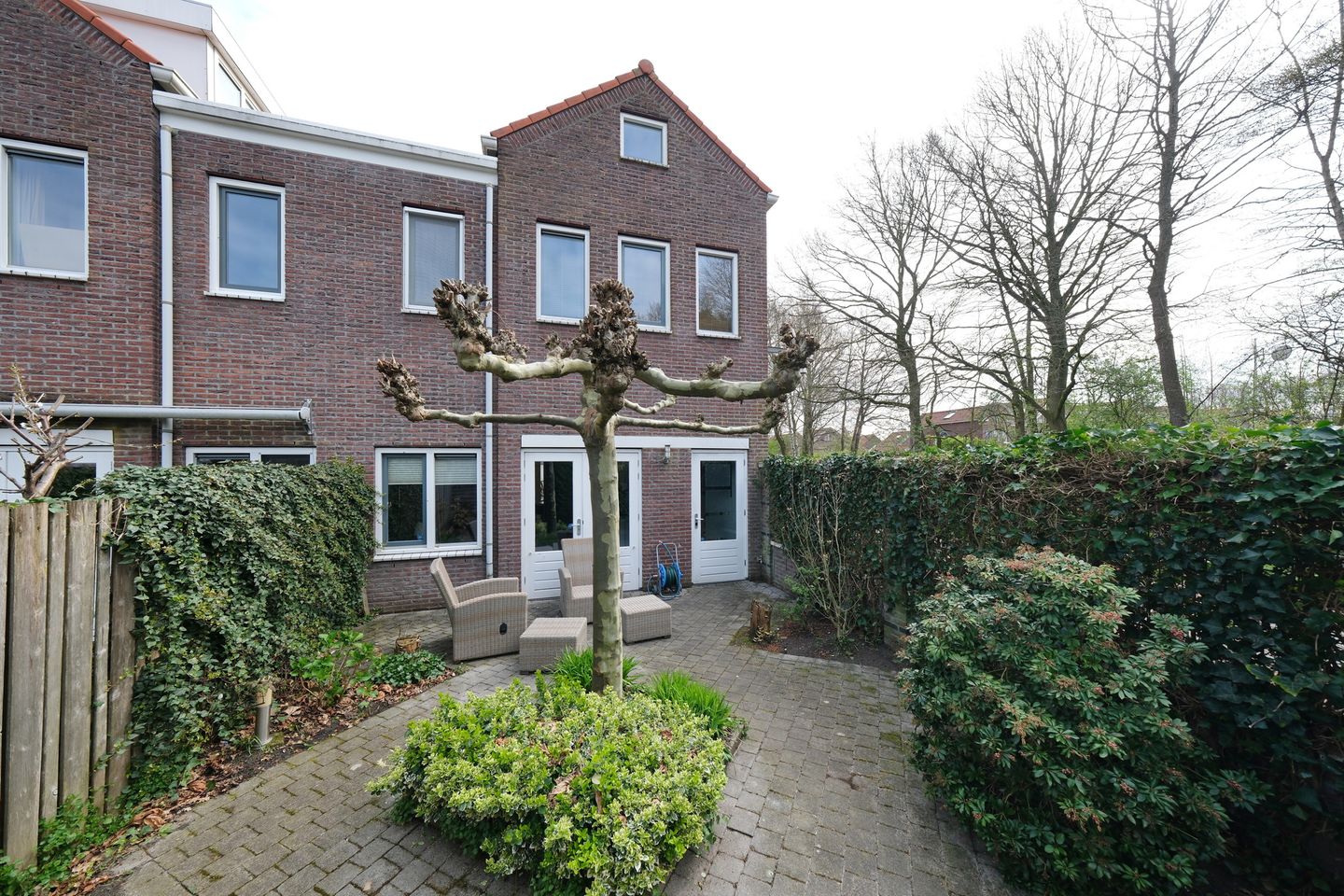 De fraai aangelegde achtertuin vormt een verlengstuk van de woning en biedt een oase van rust en groen. Met sierbestrating, volwassen beplanting en platanen geniet u hier van natuurlijke beschutting en optimale bezonning dankzij de ligging op het westen.