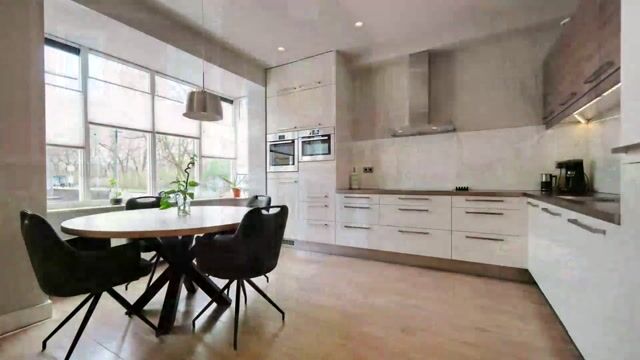 De royale L-vormige keuken (2014) is voorzien van diverse inbouwapparatuur, waaronder een koelkast met vershoudlades, separate vriezer, vaatwasser, inductiekookplaat, oven, combimagnetron en afzuigkap.