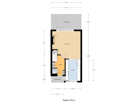 - 66 m² (12,00 meter diep en 5,50 meter breed)