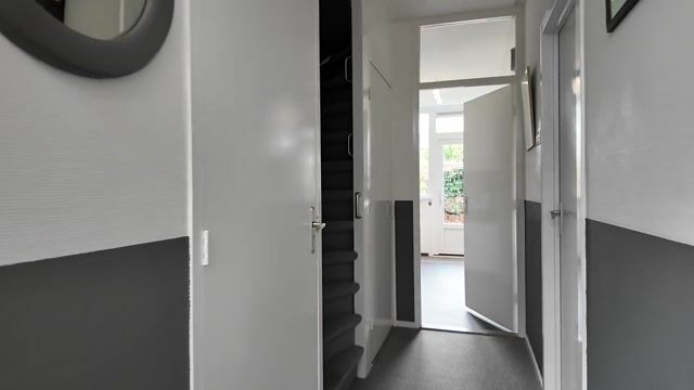 Via de entree heb je toegang tot het toilet en de meterkast. Vanaf hier loop je door twee verschillende deuren naar de leefruimtes.