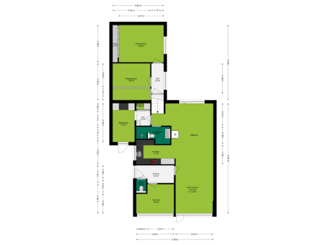 - 75 m² (8,00 meter diep en 10,00 meter breed)