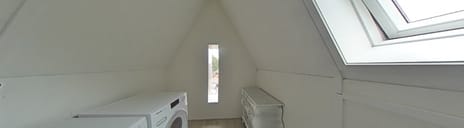 De vierde slaapkamer heeft een te openen dakraam, wat zorgt voor extra licht en ruimte. De kamer is sfeervol ingericht en geschikt als slaapkamer, werk- of hobbykamer. Via de overloop is bovendien een vlizotrap naar de bergzolder bereikbaar, ideaal voor het opbergen van seizoensspullen.