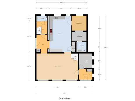 Begane grond: entree, hal, werkkamer (installatieruimte). Lichte ruime woonkamer met fraai hoog plafond en grote raampartijen, gezellige pellet kachel en open trap naar de vide. Halfopen woonkeuken voorzien van alle gebruikelijke inbouwapparatuur met onder andere een inbouw koffiezetapparaat en een praktische Quooker. Vaste kast met de aansluiting voor wasmachine en droger. De keuken is een centraal punt in de woning van waaruit nagenoeg alle ruimte zijn te bereiken. Vanuit de keuken is het buiten terras bereikbaar aan de achterzijde. De achtertuin is onderhoudsvriendelijk ingericht met een grote terrasoverkapping, zon-, schaduw, feestje het kan hier allemaal.