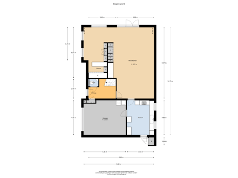 Aan de voorzijde van het huis vinden we de woonkeuken met hoekopstelling, veel kastruimte, diverse inbouwapparatuur en een deur naar buiten. Aansluitend de inpandige garage met elektrische deur, die tevens is voorzien van wasmachine-/ en drogeraansluiting.