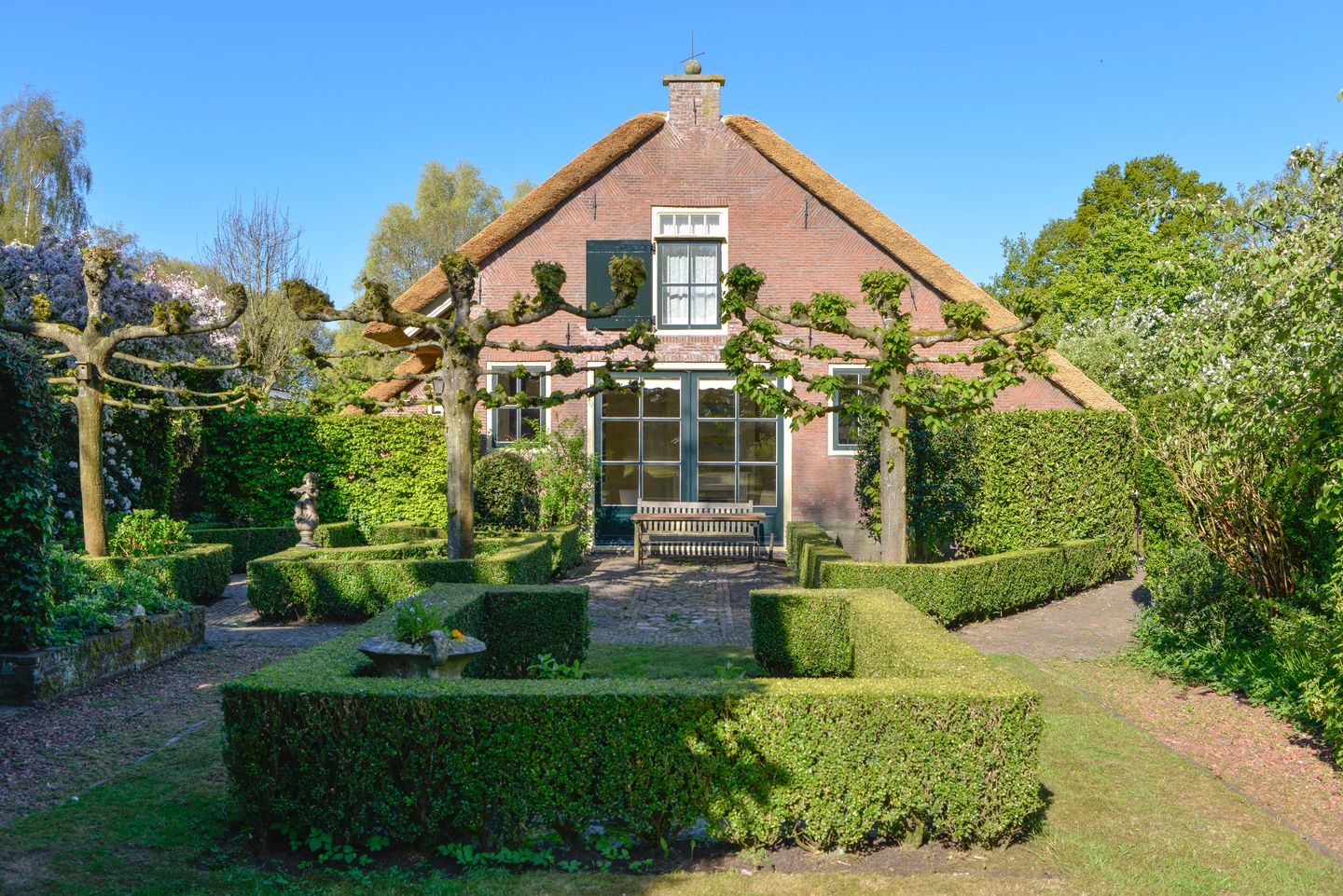 De rieten kap is recent vernieuwd (maart 2026)), wat bijdraagt aan de verzorgde uitstraling en duurzaamheid van het geheel.