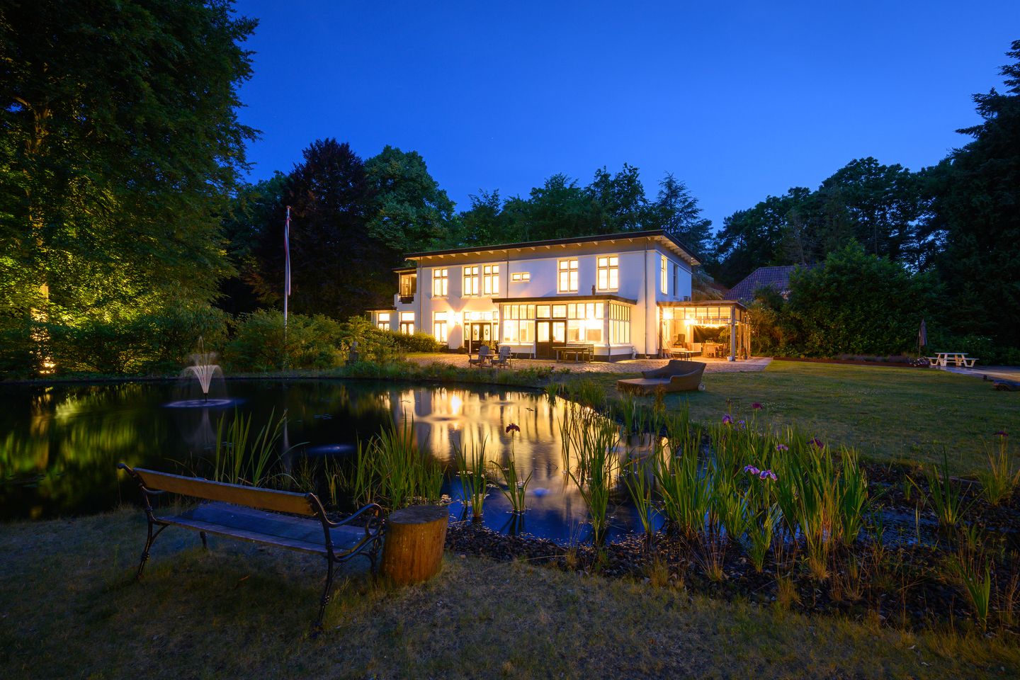 In een schitterende ambiance van bos en groen, treft u dit in 2022 volledig gerenoveerd en comfortabel VRIJSTAAND LANDHUIS (voormalig sanatorium) met RIETGEDEKT VRIJSTAAND POOLHOUSE (2015), royaal 12x6m luxe zwembad (2014) en een parkachtige bostuin met vijverpartij op ruim 1,4 HA eigen grond.