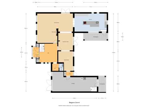 Vanuit het portaal stap je zó de inpandige, multifunctionele garage in van maar liefst 34 m², welke van alle gemakken is voorzien. Aan de achterzijde vind je een deur naar de tuin, terwijl de voorzijde is uitgerust met een dubbele garagedeur én een aparte loopdeur naar de oprit. Daarnaast vind je hier een praktische natte ruimte, voorzien van een wasbak en aansluitingen voor zowel wasmachine als droger. Extra handig: via een tweede trap heb je directe toegang tot de eerste verdieping van het huis.