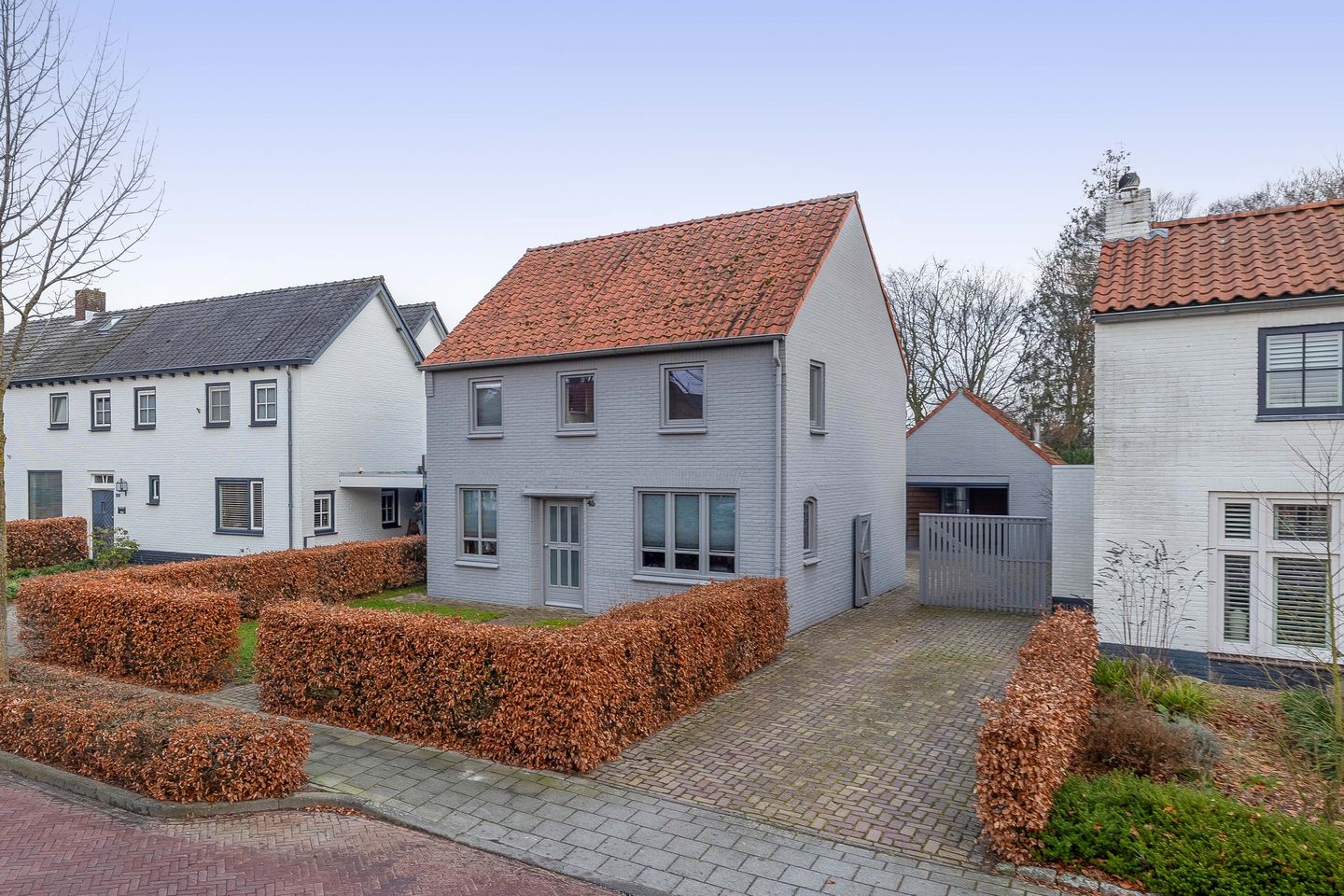 Het buitenleven bij deze woning is ideaal. De achtertuin is aangelegd met handgebakken klinkers, hagen en beplanting. De tuin voor de woning is aangelegd met een gazon met klinkerbestrating en een riante oprit langs het huis, welke gemakkelijk parkeerruimte biedt aan 4 auto's, waarvan er 2 achter de dubbele houten poort kunnen staan.