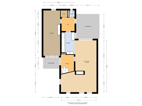 - 45 m² (5,00 meter diep en 9,00 meter breed)