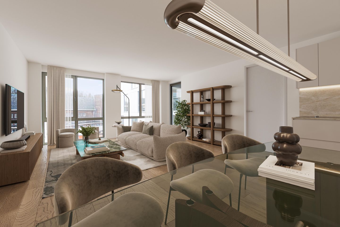 Disclaimer: De getoonde foto’s zijn echte beelden van de appartementen, maar digitaal bewerkt om een indruk te geven van de mogelijkheden. Hierdoor lijken vloeren, afgewerkte wanden en soms meubels aanwezig. Bij oplevering worden de appartementen casco opgeleverd; het afwerken van vloeren en wanden is voor eigen rekening van de koper.