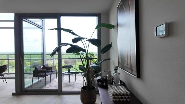 Dit penthouse beschikt over meerdere buitenruimtes die het wooncomfort naar een hoger niveau tillen. Aan de voorzijde, op het zuidoosten, vind je op de begane grond een royaal dakterras dat zich uitstrekt over de volledige breedte van de woning. Hier is volop ruimte voor een zitje of loungehoek, perfect om in alle rust te genieten van de ochtendzon en het indrukwekkende uitzicht over de stad. Aan de achterzijde zijn alle slaapkamers voorzien van een eigen schuifpui met directe toegang tot het balkon. Zo profiteer je ook vanuit de privévertrekken van een aangename buitenbeleving. Of je nu binnen of buiten bent, het uitzicht en de lichtinval maken dit penthouse tot een bijzonder aangename en ruimtelijke plek om te wonen.